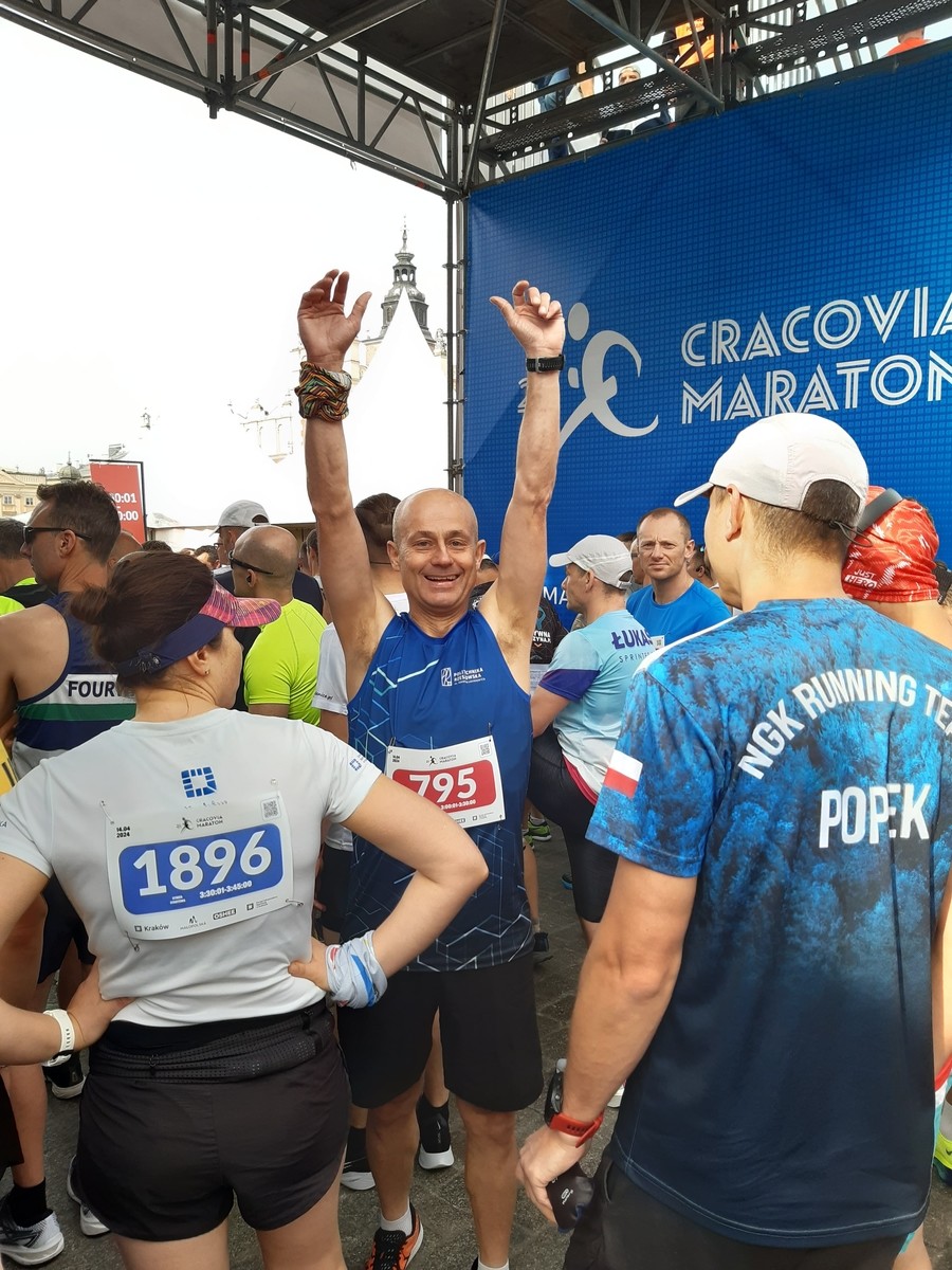 Przebiegłem już tyle maratonów (do 21 Cracovia Maratonu było ich 16 nie wliczając biegów ultra) i miałem świadomość, że przy wysokiej temperaturze i mocnym słońcu szybko się traci energię, a przy długich biegach racjonalne gospodarowanie zasobami energetycznymi jest kluczowe. Ale cóż znowu serce wygrało z rozumem. Zamiast odpuścić i pobiec trochę wolniej niż wstępnie planowałem od razu wystartowałem bardzo mocno. A mocy wystarczyło tylko do ok 30 km,. Tak więc już na nawrotce na Nowej Hucie byłem tak zmordowany, że nie trzymałem tempa, a na punktach żywieniowych piłem na stojąco. Tempo słabło mijali mnie kolejni biegacze i "odbierali" resztki sił, które tak jeszcze były potrzebne. Dodatkowo silny wiatr dmuchał w twarz całe ostatnie 12 kilometrów. Na szczęcie wytrenowanie biegowe pozwoliło mi włączyć wolniejszy bieg i jakoś "doczłapać" do mety, znacząco wolniej niż planowałem
